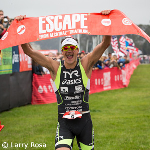 Andy Potts won his sixth Escape From Alcatraz title by 38 seconds over Bevan Docherty of New Zealand and Sarah Haskins won her first Escape by a 23 seconds margin over Mirinda Carfrae of Australia