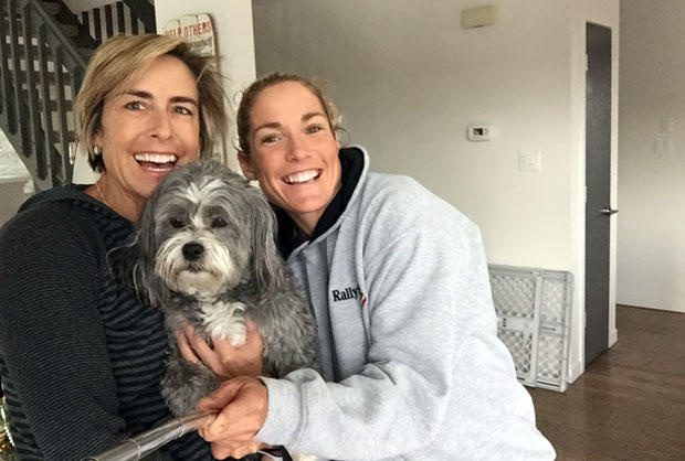 Triathlon coach Siri Lindley slid on her stomach over an icy pond to rescue her spouse Rebekah Keat’s dog from freezing water Sunday in Boulder, Colorado.