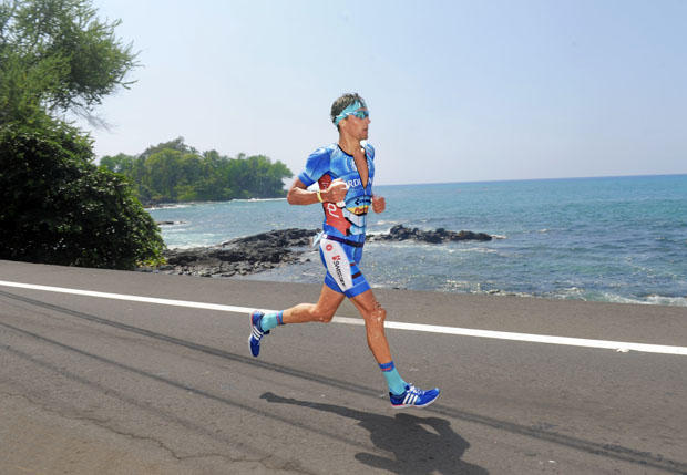 After long swim and bike legs, the competitors at Kona find a fluid, graceful run form is the best weapon against exhaustion. Photo Gallery by Timothy Carlson.