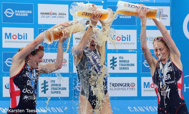 Vicky Holland pushed Gwen Jorgensen harder than any time during her unbeaten streak, but the American surged to a 5-seconds margin for her 11th straight WTS victory.