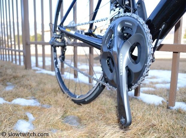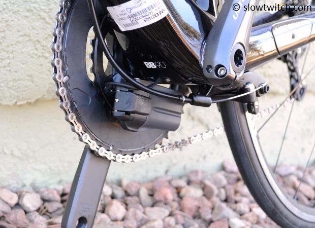 That’s a 170mm 50/34 Ultegra crankset, Shimano chain, and Ultegra Di2 front derailleur: