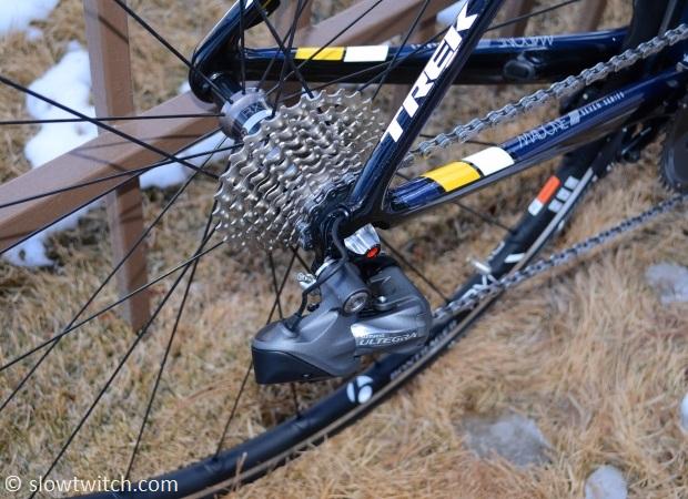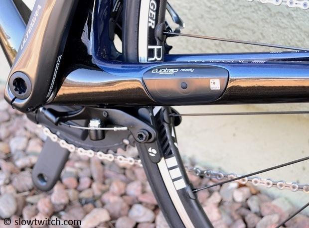 The left chainstay is compatible with Trek’s DuoTrap computer.