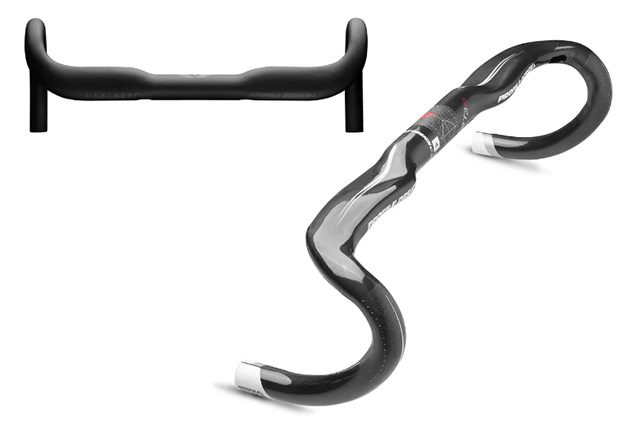 I replaced these with a set of Profile Design DRV/AERO, a terrific bar that I love because the tops are not just ergonomic, the flat tops section of that bar protrudes forward of the handlebar clamp. Too many bars protrude backward. I almost always feel cramped when I’m riding on the tops, and if the bar’s tops come back from the handlebar clamp this is another kneecapper if you’re out of the saddle on steep enough hill. This is a great little bar, only $85, and if I had a little more coin I’d have gotten Profile Design’s Canta Ergo, considerably more money, you can see both bars below and you’ll see what I mean about the shape of the tops. (Here's where you'd see these bars.)