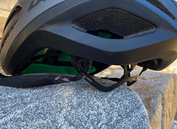 In the back of your skull is the occipital bone. Your cerebellum sticks out, behind your head, like the trunk of a car, and that bone protects it. It’s the rear undercarriage of your brain. For my odd head the successful retention system reaches down and cradles the occipital bone from the underside, and that keeps the helmet from rotating forward. Fewer people appreciate that retention systems can be raised and lowered. In the image above you see where that adjustment is in the Lazer Vento, and that adjustment is also available in the Giro’s ROC LOC ® 5 AIR system, but that range and function of that adjustment is, in my opinion, a weak spot of that retention system.