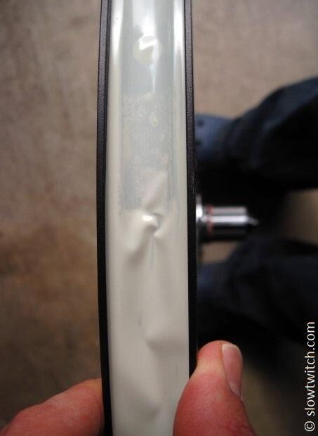 Once you get a close look, however, you see that the new rim is very wide indeed. While listed at 25mm, I measured my pair at 25.3mm in the center of the braking surfaces. Internal width is 20.6mm (I have also seen 20.7mm listed – close enough).