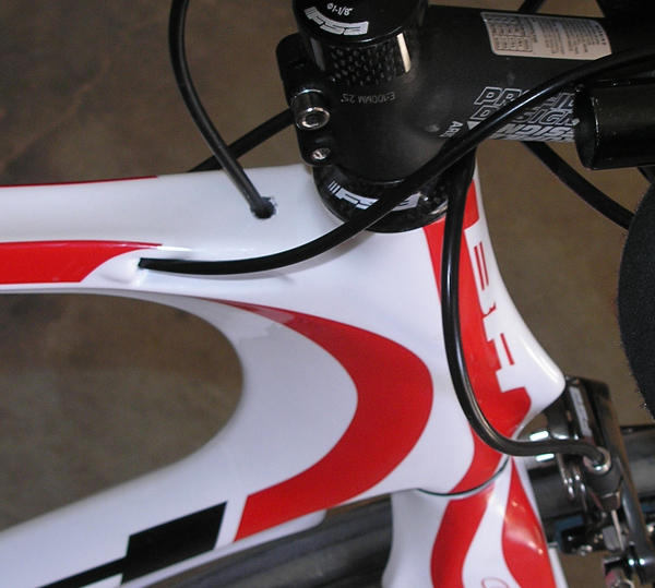 The thing is, the height of the bike is whopping in this size. The head tube is 170mm tall, and the bike's stack is 580mm. This is not necessarily bad. In fact it's downright good, if this is the style of bike you need. Bikes built by Cannondale, Scott, Blue and others trend toward this geometric theme. To put this in perspective. Felt F Series and Specializded Venge road race bikes have shorter head tubes, size-per-size, than BH tri bikes do.