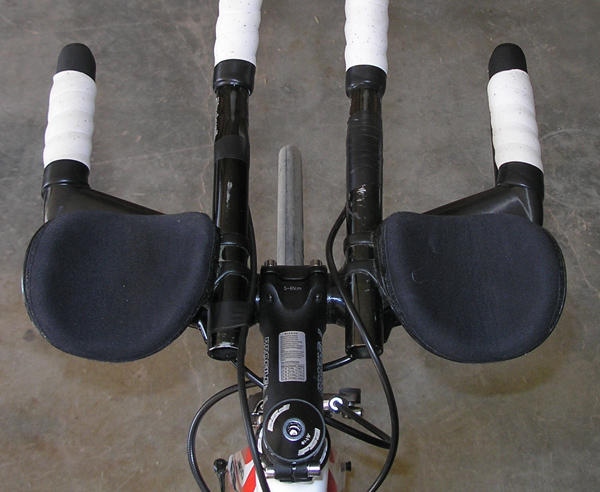 So I had a three strikes against me when getting this bike to fit: Since I ride steep, and because I'm not particularly long-legged for my height, I tend to prefer long/low tri bike geometries. That, plus the fact that I was to ride a high profile aerobar, and a narrow/tall bike frame, meant I had my work cut out for me.