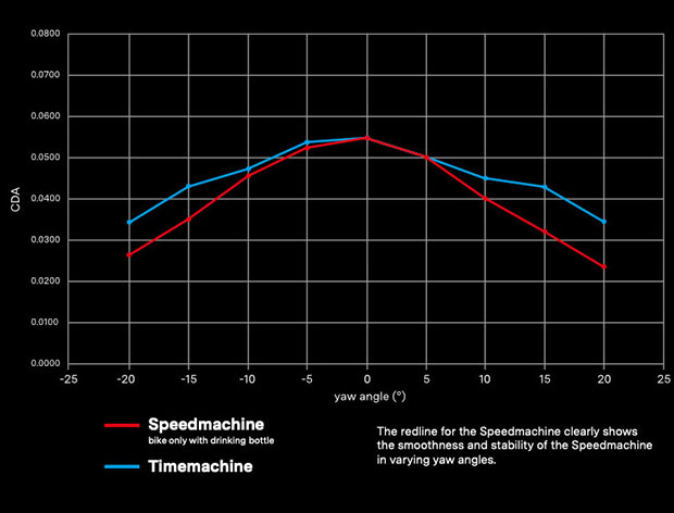 As you see from the above chart the bike excels in a yaw versus BMC’s prior TT bike. I’m not sure I stipulate to the takeaway that BMC ascribes to the results. I don’t know that the data “clearly” shows an increase in stability and smoothness across a yaw. But I do think the chart clearly shows that the bike performs better in a yaw.