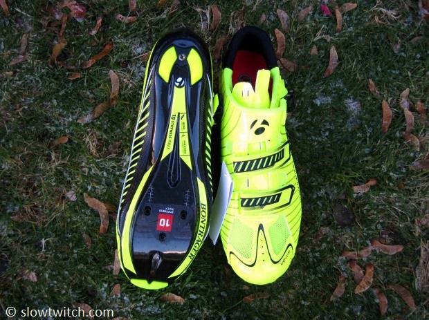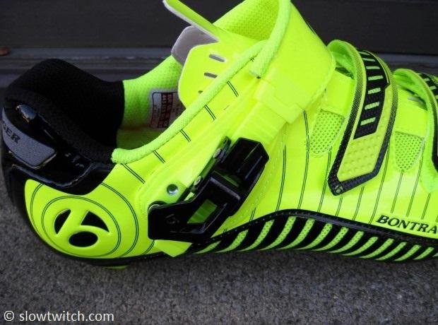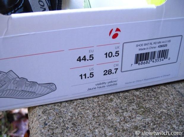 These 44.5’s felt dead-on perfect riding on the trainer with thin socks. The toe box feels somewhat reminiscent of New Balance shoes – rounded and wide enough, but not too wide. Bontrager only offers the Visibility color in standard widths; black RL Road shoes can be had in extra-wide for those that need it.