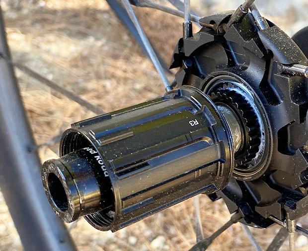 CADEX does a thorough job with hubs and as you see above employs a ratchet style freehub assembly. This is CADEX’s R3-C Aero hub and it’s got a 40-tooth ratchet, with ceramic bearings. The lacing is weird and let’s talk about that.