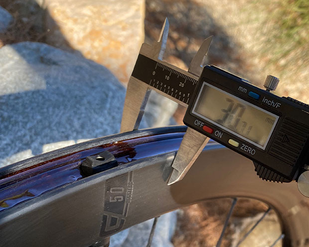 The outer rim width is advertised as 30mm; I get a little more than that with my calipers as you see below.