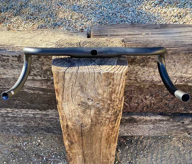 But more to the point – for me – it allows the bar to be built with a very shallow drop – which I like – and my wrist clears the underside of the handlebar when I’m in the drops of a shallow-drop bar. With this bar, it’s 16° flare and a 5° outsweep and I don’t need that much flare. This is what makes this a true gravel bar and not quite as good a match for my road bike. I’ve got a CADEX AR on a road bike of mine and I find that a perfect road bar.