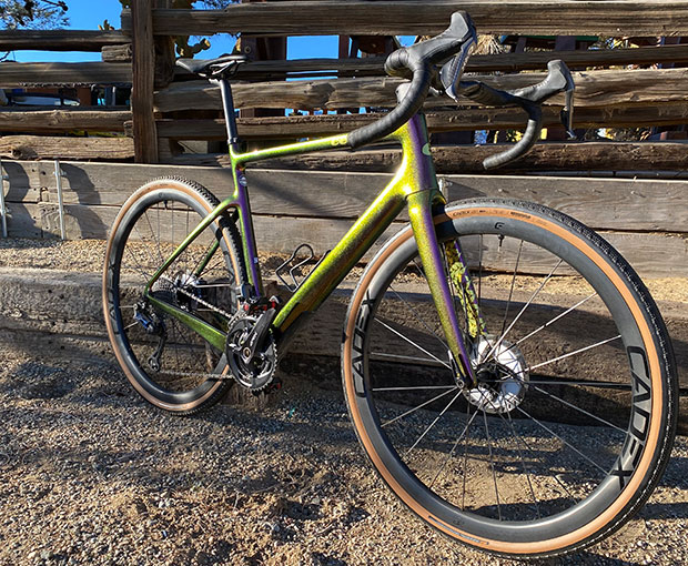 CADEX also launched new tires today, each 40mm, one with a finer tread and one with a little more bite. They’re great. They’re fine. If I don’t sound over-the-moon impressed, that’s me, not the tires. Where I ride, what gravel means to me is either pavement or full MTB, all smooshed into the same loop. That is best ridden – I find – with a 650b wheel and a 53mm (or so) tire. Which isn’t either of these tires. So, the tires look and ride great and the tires and wheels really dress up this Cervelo Aspero, do they not?