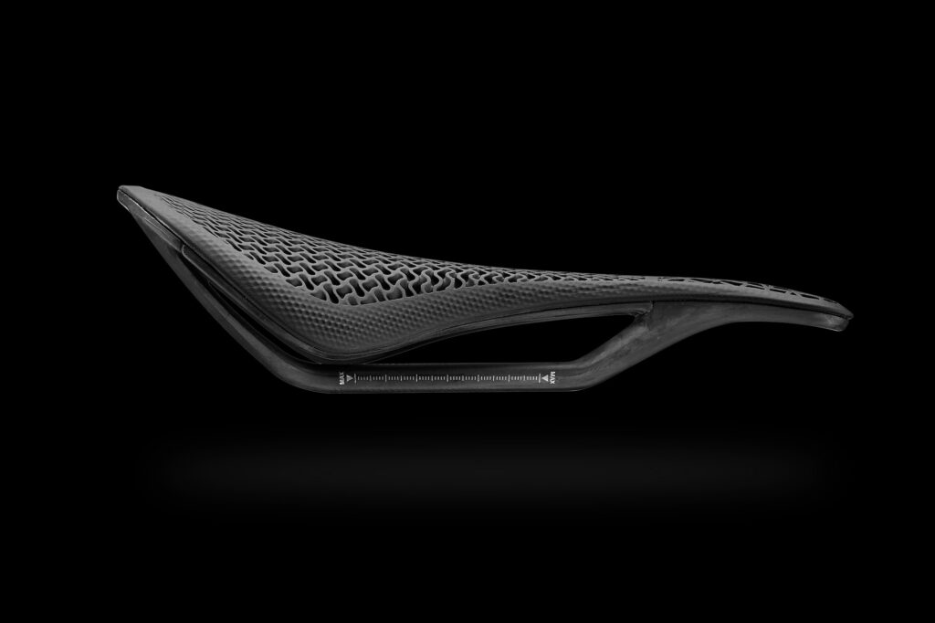 As the name suggests, the new saddle meshes 3D-printed G3D gyroid infill (don’t worry – I’ll explain shortly) with a carbon base to create an impressively lightweight saddle (147 g) that offers lots of support and cushioning. To our knowledge this is the second lightest 3D printed saddle on the market today. And it’s coming on almost 50 grams lighter than some of the biggest saddle makers.