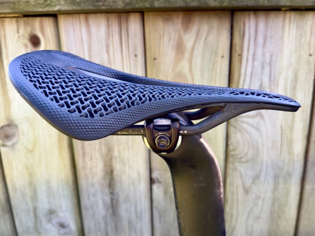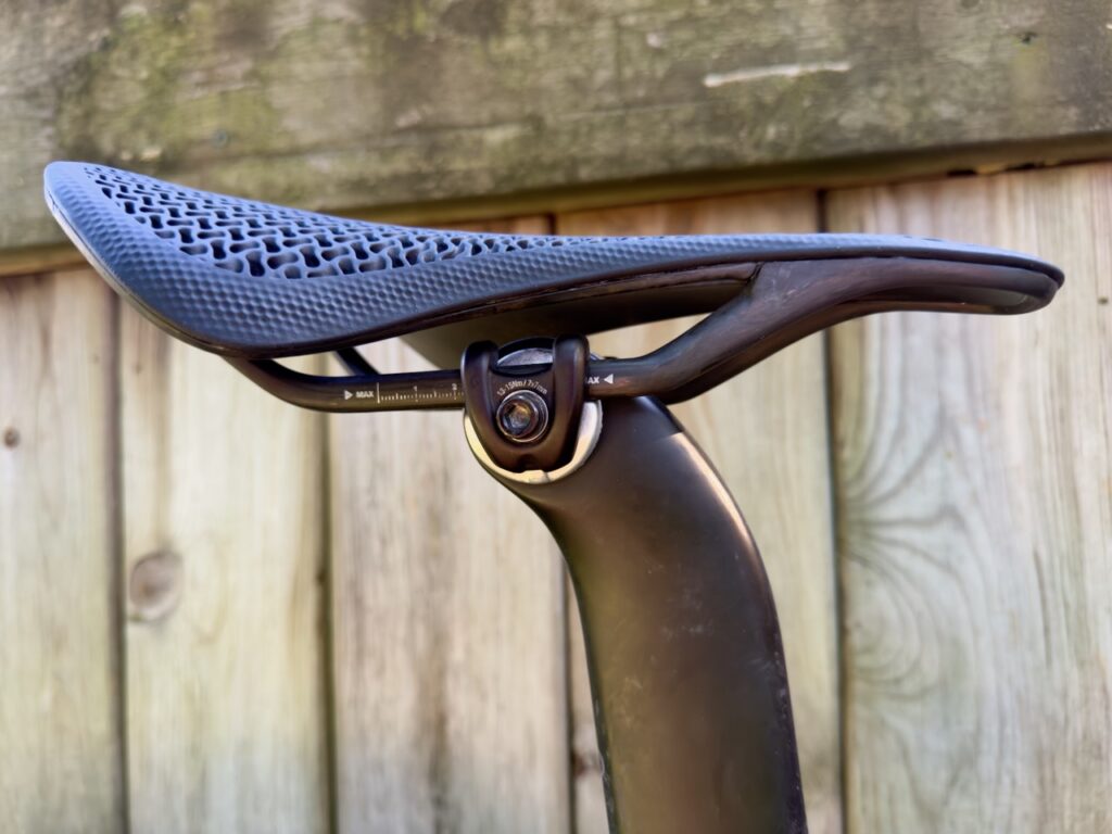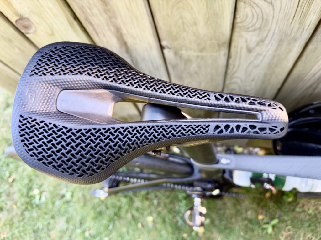 Almost immediately I found that the Amp 3D lived up to the hype about providing lots of support around my sit bones. The 145 mm width works really well for me personally. If you are built differently, though, and are still looking for a lightweight, 3D printed saddle, you might want to look for some options that provide more customization. (Fizik offers a customization program, for example.) I enjoyed the support and narrow width at the front end of this saddle so much I even threw it on my tri bike, and once I had the angle dialled in, found myself spending lots of time in the aero position without any issues. (CADEX seems to be directing this saddle towards road use, and its being used by the Team Jayco AlUla and Liv AlUla Jayco World Tour cycling teams, so I’m not sure they envision it as a triathlon saddle. The softer material on the nose and the large cutout, though, certainly make it an option on that front, as far as I’m concerned.)