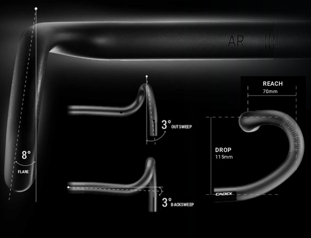 CADEX is taking a different route to handlebar design. Yes, it’s got shape in mind, and we’ll get to that. But it’s really the more traditional metrics of weight and stiffness that animate the designs of these bars. And by the way, the new AR (announced today) and the CADEX Race are both road bars. Mind, I have a pair of these new AR bars (image above) and they’re both going on some new gravel bikes I’m building up, and that’s because of their shape. If you read what I wrote about “drop” handlebars you’ll know that I don’t really see a difference between road bars and gravel bars. I’ve got a gravel bar on my QR SRsix road bike, and with this CADEX AR I have a new fave road bar for my gravel bike.