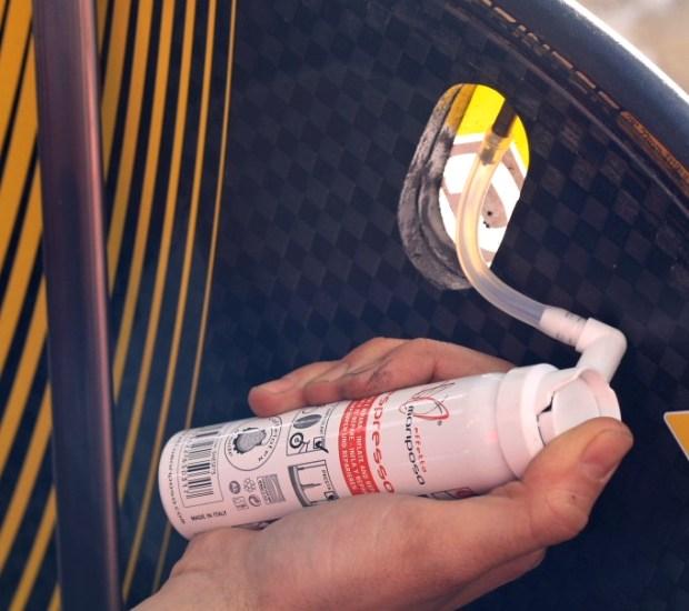 No, not that kind of espresso (although I would love one right about now)… the ‘Espresso’ from Effetto Mariposa is their version of fix-a-flat. Call it Caffelatex-in-a-can. This is intended as an all-in-one C02 plus sealant that you can use on the road to seal your puncture and inflate the tire in a single step.