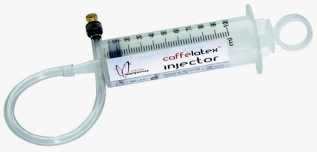 The Caffelatex Injector is simply a syringe with a tube that can be used to inject Caffelatex (or any sealant) in to your tire.