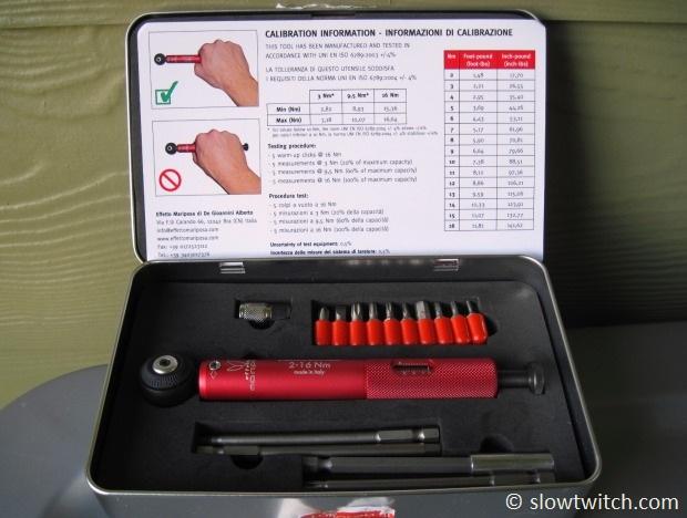 The Giustaforza works from 2 to 16 Newton Meters, and is said to be accurate +/- 4%. It includes a variety of essential bits, including all major hex and Torx sizes used on bicycles. Effetto Mariposa guarantees that the calibration will hold true for 5,000 cycles (or ‘clicks’), and they offer a re-calibration service for those who exceed this. Ham-fisted mechanics (you know who you are): Put this on your list from Santa or other gift-carrying holiday character. Your stem bolts will thank you later. MSRP $250