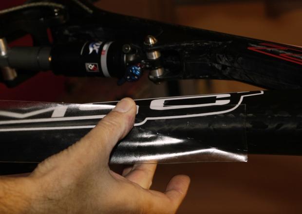 What is Shelter? Effectively – it does what a clear ‘bra’ does for the front of your car’s hood. Shelter is a clear adhesive tape made specifically to protect your expensive carbon frame from scratches and impacts. It is 1.2mm thick, and works by spreading out the area of impact from that devilish rock that flies up from the pavement or trail.