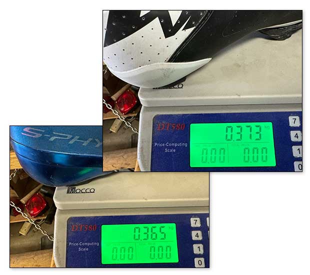 Advertised is a 260g weight to, for example, the S Phyre’s advertised weight of 225g. But in my (larger) size, with (identical Speedplay) cleats on, with the Tempr CFT road shoe I pay a fewer-than-10g penalty per shoe versus the S Phyre.