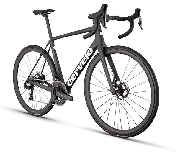 This bikes comes in sizes 48, 51, 54, 56, 58, 61 and that’s been how Cervelo does it for as long as I can remember. They’re all built with 700c wheels. Cervelo’s view is that seat angles shouldn’t change as a bike gets smaller (that is, as a bike becomes of a size more often purchased by women). Cervelo does not believe in women’s geometry. Nor do I. However, if you keep the seat angle at 73° as the bike moves down to sizes 51 and 48, and you don’t lengthen the bike’s reach (that is, you don’t add top tube length), you’ll run into a shoe overlap problem. Cervelo solves this by changing the steering geometry. It slackens the head angle and adds fork offset. For example, in size 48 the bike has a 71° head angle and a 51mm fork offset. Doing both these things in tandem keeps the trail to 57mm, which it is throughout the line, from 48cm all the way to 61cm. (Read what I wrote about Cervelo’s Caledonia geometry and you’ll get a sense for this.)
