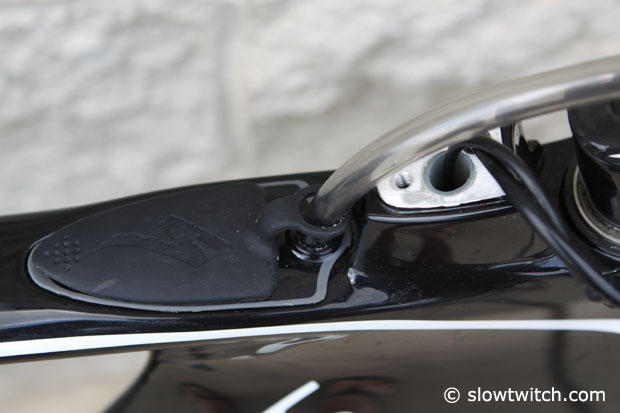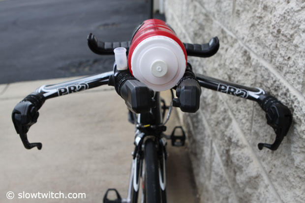 The view from the front over the Shimano Pro Missile Evo bar with the XLab Torpedo mount and the feeding tube mouth piece from the Specialized Fuelselage.