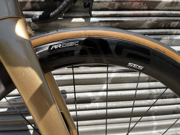 The ENVE SES Ar4.5 rear wheel with the 29mm wide ENVE tubeless tire.