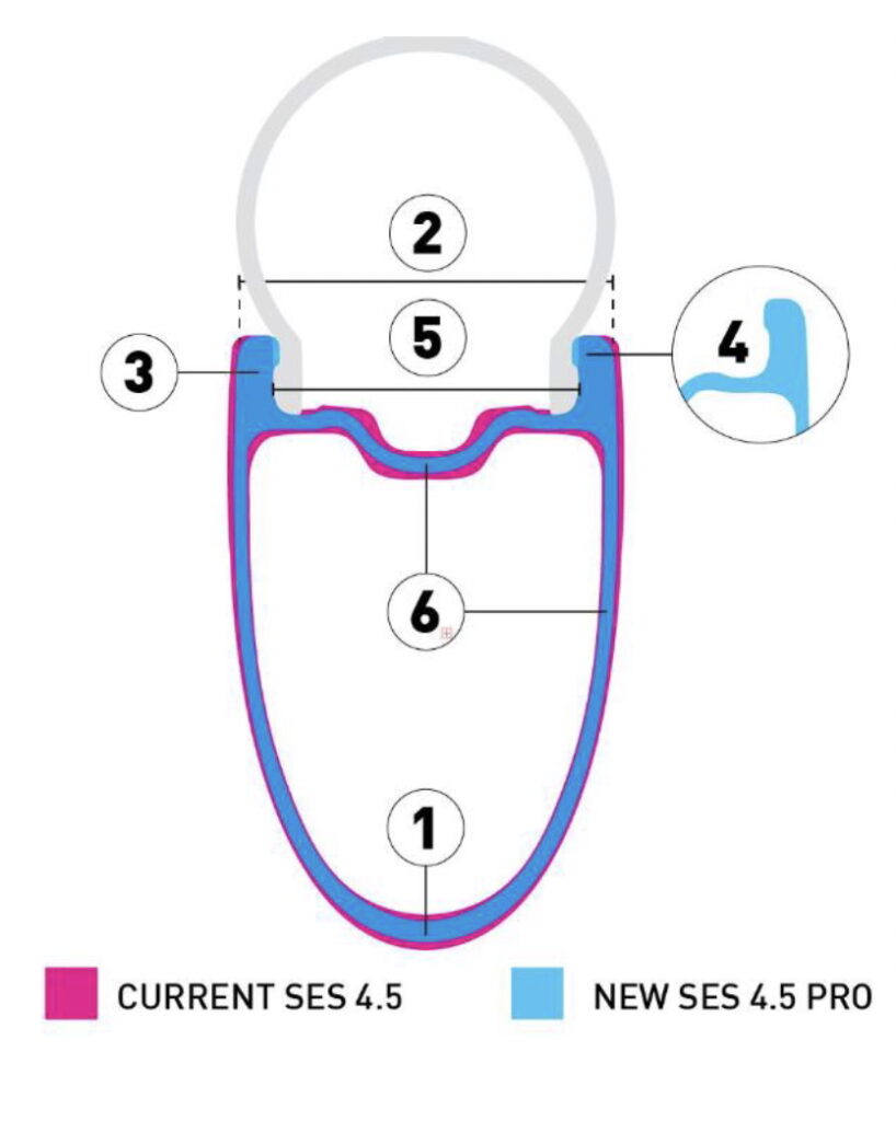 The new rim design saves roughly 50 grams per rim over the SES 4.5. This is where the weight savings come from.