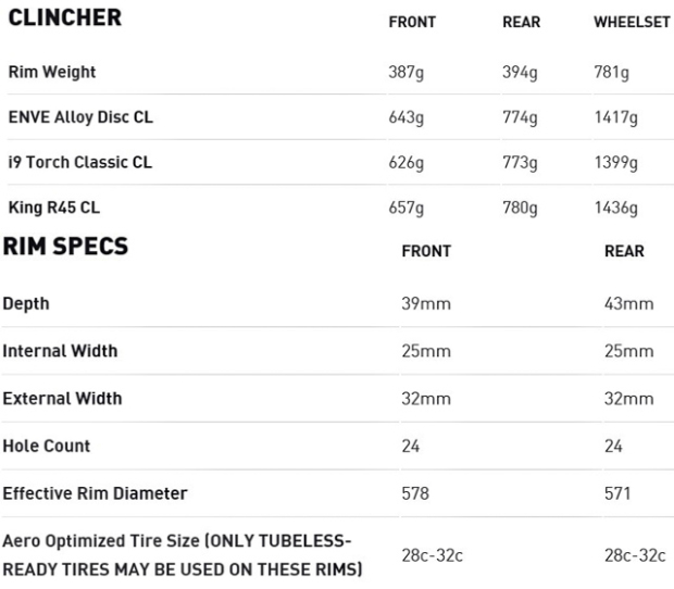 Full rim specs are above, with complete wheel weights varying based on the hub model.