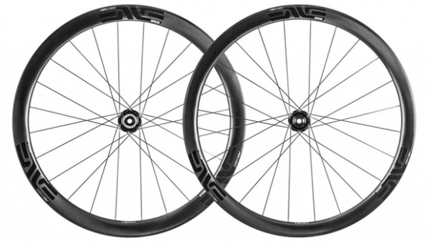 The AR line is the next step up in ruggedness, with two depths available – the AR 3.4 (above) and AR 4.5. Actually, it’s a total of four different rim depths, as ENVE likes to pair shallow front wheels with slightly deeper rear wheels. The AR 4.5 can be had in tubular or clincher, with the newer AR 3.4 available only in clincher. Consider them fit for endurance road bikes or all road bikes, which often have tire clearance of about 30-35mm.
