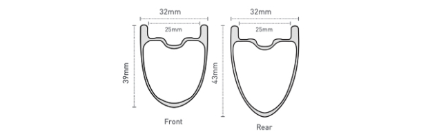 The AR 3.4 clincher rim profiles can be seen above. They are clearly much wider than traditional road rims. ENVE recommends a minimum of a 28mm tire, but note that the actual inflated size of the tire will be larger than this – we’ll explain why in a moment.