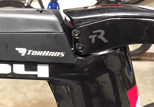 At first glance it’s a more aero way of raising the pads to a rider’s elbows, but really it’s much more than that. You loosen one bolt and raise or lower the mono-riser. Loosen two bolts and you change the tilt. Aero matched stem spacers are now only needed to mate the top of the stem with your top tube storage device of choice (per the image above). No more hacks; no more being locked into one position. Utility. But to be honest, this didn’t occur to me at first. I was more focused on the aerodynamic aspect of the bar, and not the functionality. I was seeing the Ventus still, and not through the prism of turning a standard bike into something like an ad hoc dynamic fit bike.