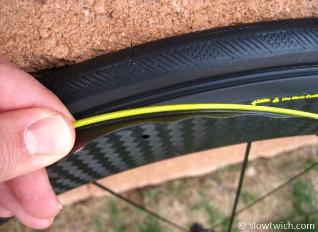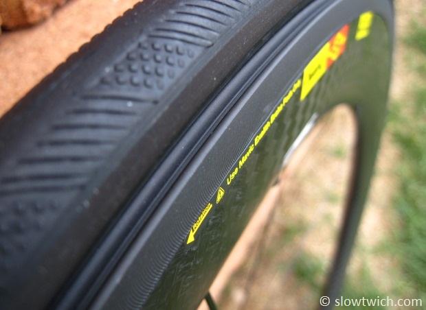 The only ‘bummer’ about the Mavic system is the fact that you only get one tire choice. Similar to the tubular version, they recommend using ONLY their tire, as they cannot vouch for the performance of other tires. In addition, the tires rub on the Blades as they turn and deform on the road, and Mavic says that they’ve specifically designed and tested their tires to deal with this abrasion safely.
