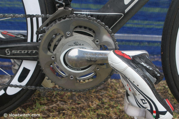 Kraft gets power data through a Shimano Dura-Ace SRM power meter.