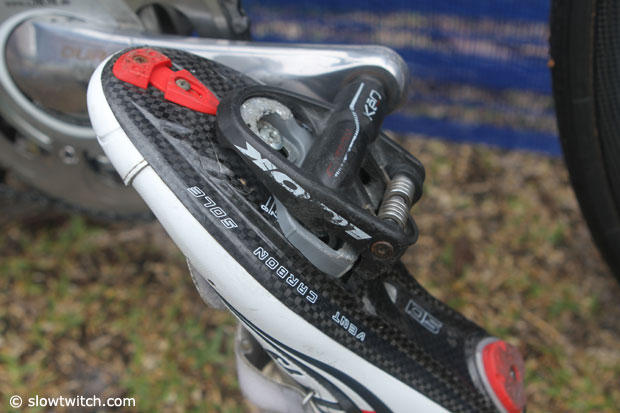 The Sidi T3 shoes were still clipped into the Look Keo pedals.