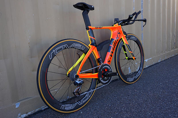 The 2017 Specialized Shiv of Tim Don may not be completely orange, but it is a bright beacon in a sea of black carbon race bikes. But it is not just about looks here. The Shiv of Tim Don also has a lot interesting details thanks to the meticulous work of ace mechanic Jeff Yingling.