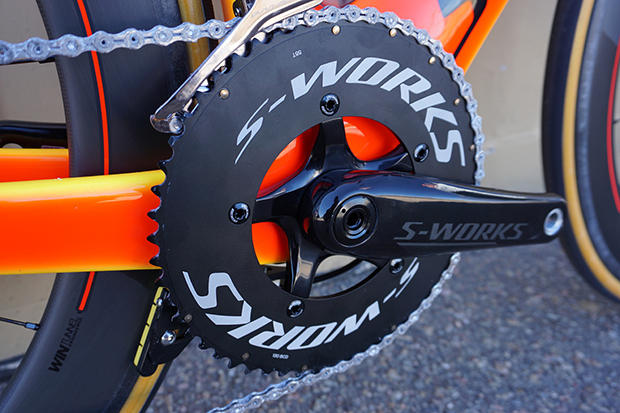 A 55 tooth outer ring is connected to a 11-25 cassette and Don rides 167.5mm Specialized cranks. Not seen here is his Power2Max power meter, but Don has it already back on his bike.
