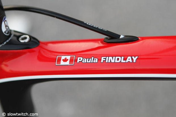 Canadian ITU superstar Paula Findlay raced in the Super Sprint Tri GP in Las Vegas this past week and I took a closer look at her Specialized Alias Pro. Specialized launched this women's specific triathlon bike last year in Kona and was touted as a newby bike of sorts, so I was surprised to see Findlay racing on it, but in all reality there is nothing newby about it. Plus Findlay told me that she loves this bike.