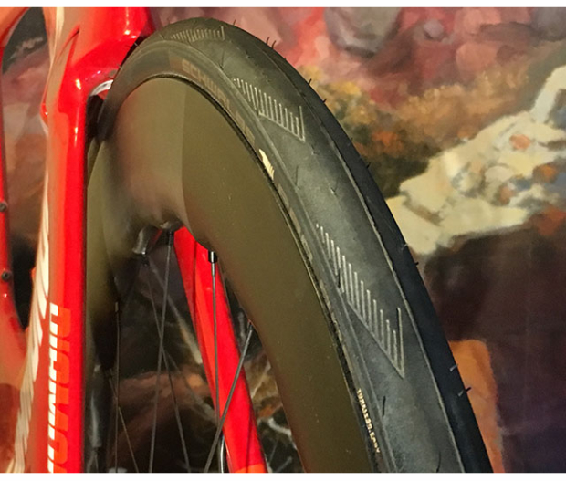 Why am I even mentioning the place this wheel is made? I’ve noticed something very anecdotally, and I don’t have enough evidence to draw a conclusion, but it has been simply an observation of mine that the brand-challenged Asian wheels that purport to be tubeless or tubeless-ready may be built on the large side, that is, to (perhaps) be extra certain of the tire not blowing off the carbon rim. They appear to be just very slightly larger than the typical tubed-rim diameter. Even a very slight addition in diameter – a millimeter – makes a difference in how easy it is to mount a tire. Just changing to a thinner rim strip – Velox cloth to Continental plastic in the old days – made tubed tires easier to mount.