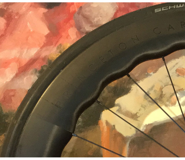 Claimed weight of these wheels, in the disc brake config, is 1555g. That’s in the same territory as Zipp’s 454 NSW. It’s a very fair weight. The hubs are fine though nothing special. Someone needs to explain to me the Chris King hub option I keep seeing from wheel companies, adding $800 to the wheelset. (I don’t mean to pick on Princeton Carbonworks, a number of wheel companies do this, I just don’t get it. Making a good hub used to not be that difficult. To me, offering a Chris King hub is an advertisement that your hub isn’t up to snuff.) That may be unfair; that’s just me. If you don’t make a wheel with a good enough hub, make a better hub. What the hell?!