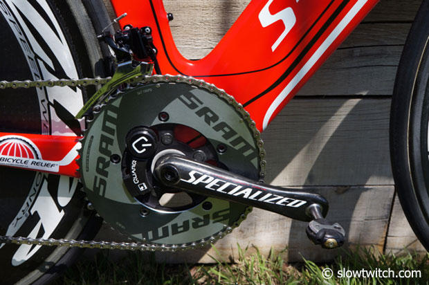 Jordan relies on 172.5 S-Works OSBB cranks with a Quarq Cinqo Saturn powermeter and Speedplay pedals.