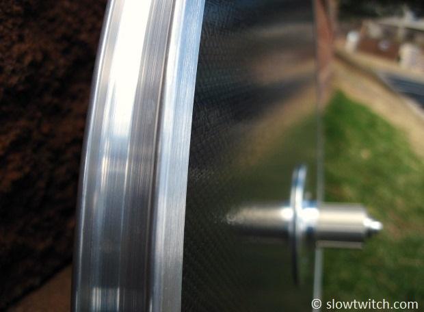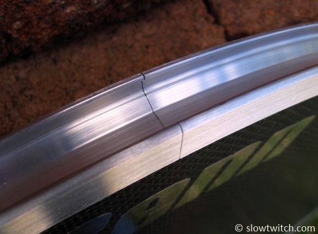 The only feature that is potentially questionable is the slight ‘lip’ between the aluminum rim and carbon skin. It’s too hard to get a good measure on, but it appears that the aluminum extrusion is about 0.5mm wider than the carbon skins on either side of the wheel.