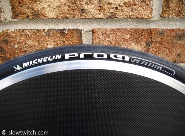 I used my disc with 650c Michelin Pro 4 Service Course tires, listed at 23mm wide. When brand new, they measured 22.0mm (at 100psi) on my test wheel. The fit – with no rim tape – is what I’d call ‘tight’. It wasn’t unreasonable, but it definitely took some effort. This is consistent with my experience with most Michelin tires (e.g. on the tighter end of the spectrum).