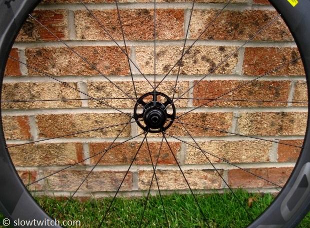 Interestingly, Specialized uses the round DT Revolution spoke. In a day and age when most manufacturers use aero spokes on aero wheels, there are some round-spoke holdouts (Easton is another example, with their EC70SL). I’ll venture a guess that the aero penalty of the Revolution isn’t huge, but I still think that a true bladed or elliptical spoke would be a more appropriate choice.