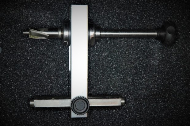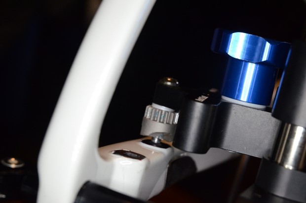 Now that you’re aligned, you remove the plugs, place the nub on the end of the cutter head inside the brake mount hole, and tighten down the articulated arm.