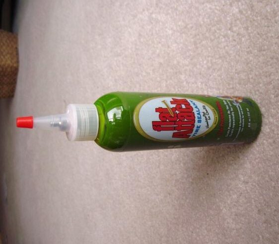 This is the other glycol sealant in our test. Unlike Flat Attack’s visible goop-plus-fiber mixture, Airlock is entirely homogenous. Call it… snotty-mustard?