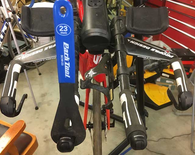 So, basically, lefty-uppy, righty-downy. That’s 1-button/Synchro from Shimano. The part of this system you need the least is pursuit shifting, if you’re on a budget. Yes, there are new little weirdnesses, like the 23mm cone wrench you need to tighten the wedge mechanism for the 1-button bar-end shifter (you have this tool, right?). Otherwise, there’s only 1 word to describe Shimano 1-button Synchro: Dope.