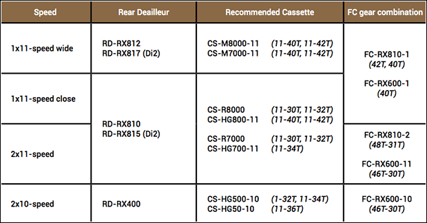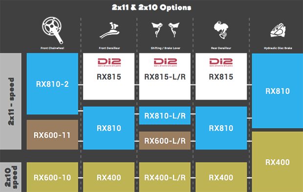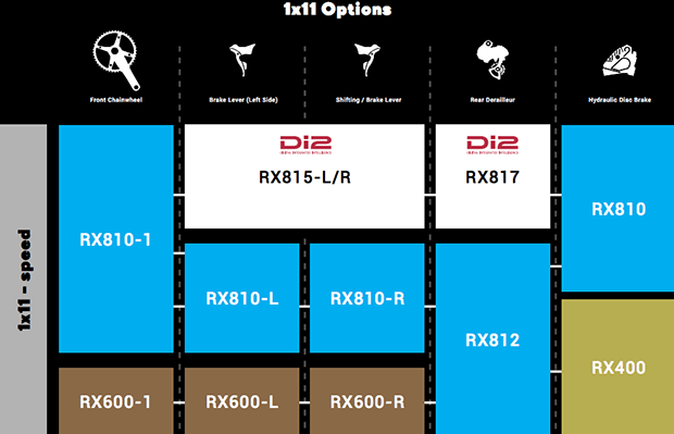 There are also mechanical and electronic options. The RX810 is the topline groupset, and is further enhanced by electronic sub-ins, such as the RX815 RD that is for electronic 2x set-ups, and the RX817, an electronic 1x RD.
