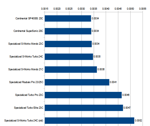 According to my results, the old S-Works Mondo Open was actually slightly faster… although, to be fair, I do consider anything within +/-.0001 on the Crr chart to be basically tied.”